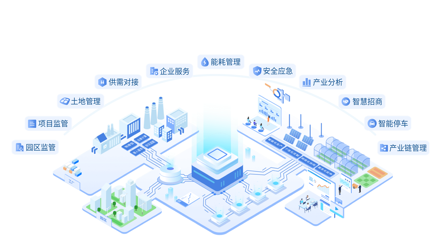 圍繞開發區所需,聚焦產業(ye),構建(jian)產業(ye)發展、企業(ye)服(fu)務、建(jian)設管(guan)(guan)理與(yu)運營管(guan)(guan)理全面協同的一(yi)站式解決方案,助(zhu)力開發區提升核心競爭力。