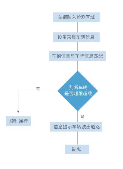該系統(tong)主要使用單(dan)位為(wei)橋梁(liang)管理(li)單(dan)位,通(tong)過(guo)高速自動檢測,篩(shai)選出超(chao)限車(che)輛(liang)(liang),提示勸導超(chao)限車(che)輛(liang)(liang)禁止駛入橋梁(liang),并(bing)引導駛入其它道路。