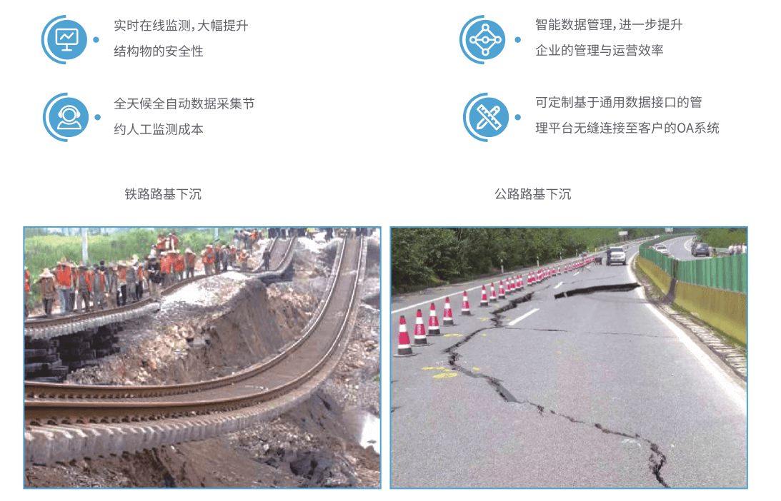 近年(nian)(nian)來,高速公路(lu)(lu)(lu)建設在我國發展迅猛,但許多高速公路(lu)(lu)(lu)竣(jun)工(gong)投入使用(yong)后路(lu)(lu)(lu)面不平整的(de)(de)例子屢見不鮮。其(qi)中最(zui)大的(de)(de)影(ying)響(xiang)因素就是(shi)(shi)(shi)(shi)軟土(tu)路(lu)(lu)(lu)基(ji)(ji)(ji)(ji)的(de)(de)塌陷(xian)、沉(chen)降(jiang)、多年(nian)(nian)凍土(tu)路(lu)(lu)(lu)基(ji)(ji)(ji)(ji)融陷(xian)。鐵(tie)軌(gui)路(lu)(lu)(lu)基(ji)(ji)(ji)(ji)建設中亦(yi)是(shi)(shi)(shi)(shi)如(ru)此,路(lu)(lu)(lu)基(ji)(ji)(ji)(ji)是(shi)(shi)(shi)(shi)鐵(tie)路(lu)(lu)(lu)線路(lu)(lu)(lu)工(gong)程(cheng)(cheng)的(de)(de)一個重(zhong)要組成部分,是(shi)(shi)(shi)(shi)承受(shou)軌(gui)道結構重(zhong)量(liang)(liang)和列車(che)(che)載(zai)荷(he)的(de)(de)基(ji)(ji)(ji)(ji)礎,也是(shi)(shi)(shi)(shi)線路(lu)(lu)(lu)工(gong)程(cheng)(cheng)中最(zui)薄弱最(zui)不穩定的(de)(de)環(huan)節。路(lu)(lu)(lu)基(ji)(ji)(ji)(ji)在其(qi)自重(zhong)及列車(che)(che)載(zai)荷(he)作(zuo)用(yong)下會產生(sheng)(sheng)壓密沉(chen)降(jiang),另外,在列車(che)(che)動載(zai)荷(he)長期重(zhong)復(fu)作(zuo)用(yong)下會產生(sheng)(sheng)累積沉(chen)降(jiang)。而路(lu)(lu)(lu)基(ji)(ji)(ji)(ji)過量(liang)(liang)沉(chen)降(jiang)會造成路(lu)(lu)(lu)基(ji)(ji)(ji)(ji)病害、增加線路(lu)(lu)(lu)養護維修工(gong)作(zuo)量(liang)(liang)、影(ying)響(xiang)正常行車(che)(che),因此,監測路(lu)(lu)(lu)基(ji)(ji)(ji)(ji)沉(chen)降(jiang)是(shi)(shi)(shi)(shi)路(lu)(lu)(lu)基(ji)(ji)(ji)(ji)工(gong)程(cheng)(cheng)要解(jie)決的(de)(de)重(zhong)要問題(ti)。