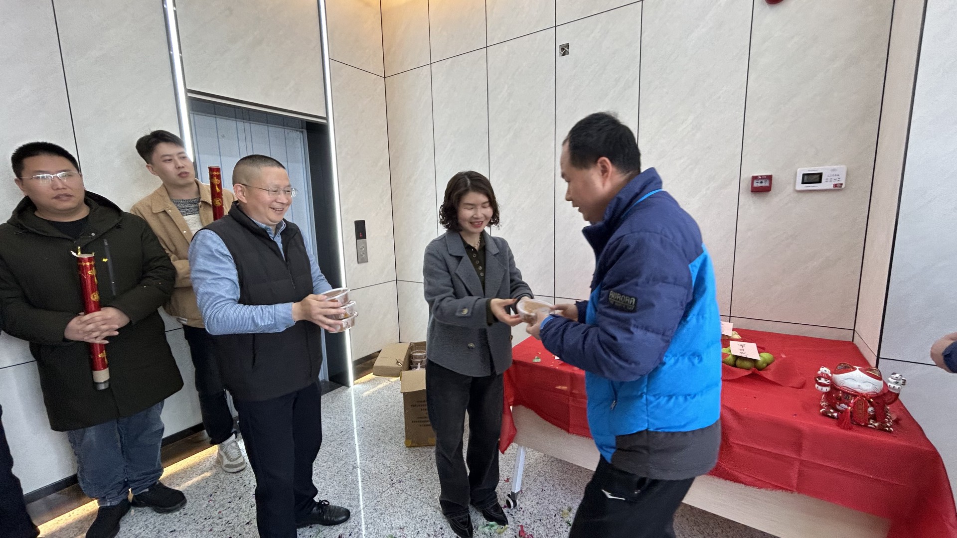隨著一聲“即時已到,開財門!”紅綢彩花飄落,公司中層員工代表們手持紅包、綠植、蘋果、桔子等進入辦公區,寓意財源滾滾,平安順遂,大吉大利,風生水起。入駐新址是一個全新的開始,也將激勵全體員工凝心聚力、篤定前行。