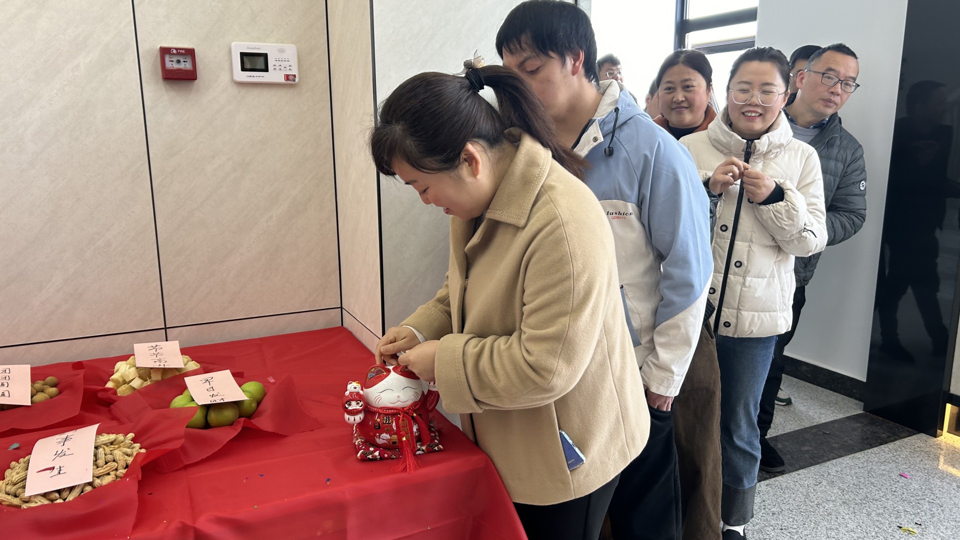 紅綢系鴻運,花果寓福音,儀(yi)式現場布置得分外喜慶,公司中高層管理人(ren)員(yuan)與員(yuan)工們齊聚(ju)一堂(tang),共同(tong)見證這一激動時刻。