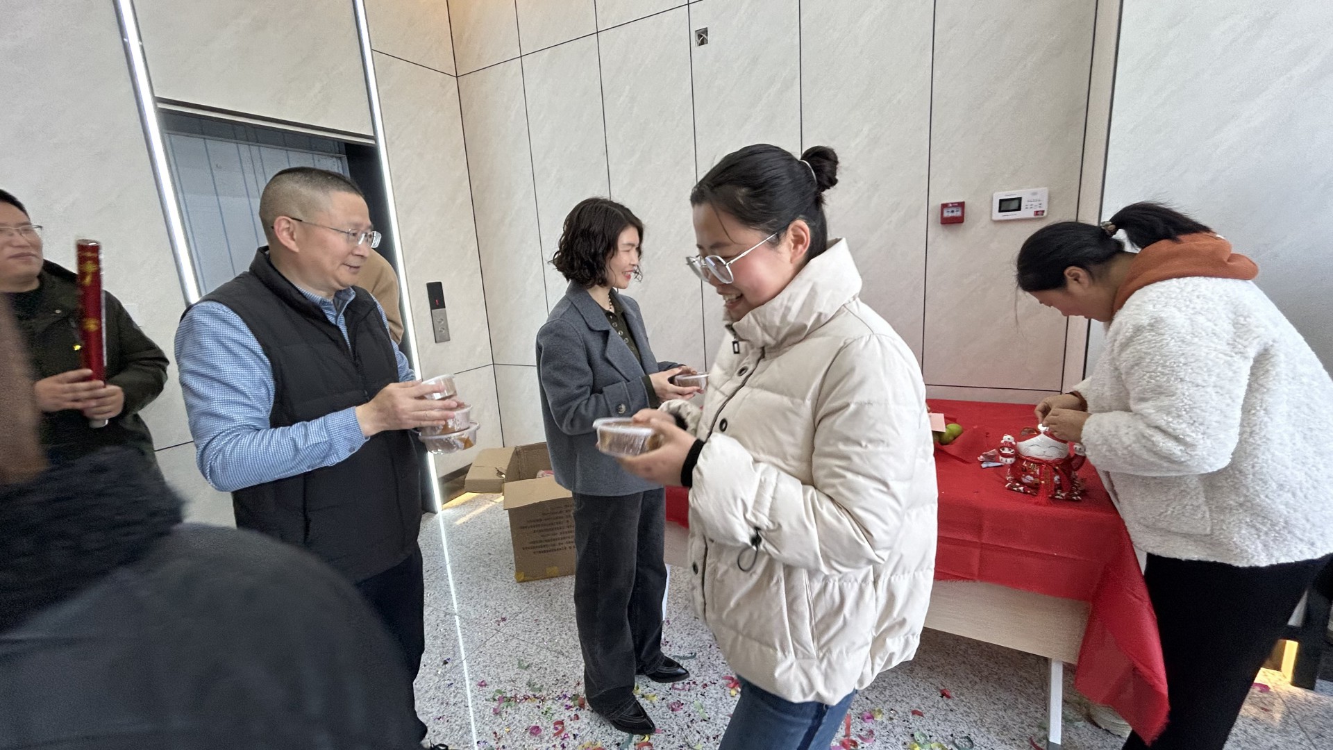 隨著一聲“即時已到,開財門!”紅綢彩花飄落,公司中層員工代表們手持紅包、綠植、蘋果、桔子等進入辦公區,寓意財源滾滾,平安順遂,大吉大利,風生水起。入駐新址是一個全新的開始,也將激勵全體員工凝心聚力、篤定前行。